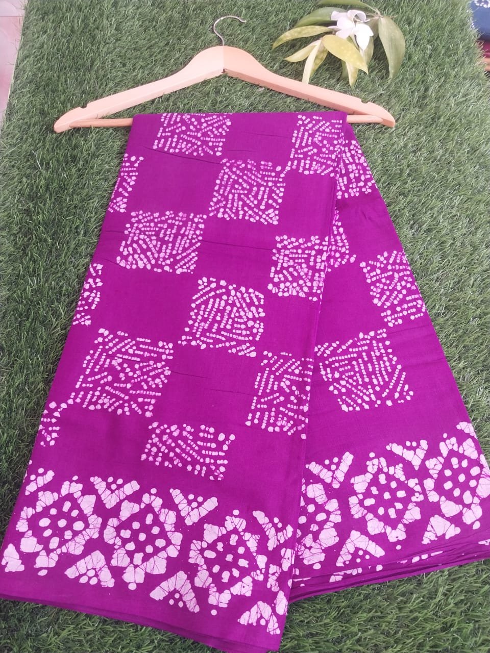 Dark Violet Pure Cotton Wax Printed Saree with Blouse